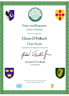 Clan Poole was officially founded on the 7th of March 2019, with the recognition and assistance of the then Registrar of Clans of Ireland, via ancestral decent; but knowing of our Maternal lineage for decades prior, so when it’s stated that we’re a young Clan, in the scale of the Clans before us we are “young”, standing centuries apart.In 2024 we undertook YDNA testing, Big Y-700 on the elected Chiefly line, this has shown that our Paternal bloodline stems from Connacht in western Ireland around 200CE. Our Chiefs Haplogroup is R-BY21233 that can be traced back to R-DF104 & R-DF105, as well as the wider R-M222. This places our Clan within the decent of ancient Celtic Noble ancestry. A public notice can be found in our news section here with the result from our Ad Hoc Derbhfine to elect our Inaugural Clan Chief/Clan Commander.Now while you are here you will find we’re a diverse bunch, whatever your creed, religion, orientation you’ll find that you’re most welcome here with us.Family, Charity and Heritage are our main aims, you put your family first always, then if you’re in a position to aid those less fortunate than ourselves, please do so, and honour your history, where we come from helps us in where we’re going.Clan/House genealogy and DNA projects, we’ll help with family tree research and we urge that members of the Clan (with the Poole surname) run DNA projects to see how diverse us Poole’s are.Folk with the name Poole and variants thereof are by right already a member of the Clan, (non-subscribed) be you choose to be active or not.Be you a Poole, Pool, Pooley, Pooly, Pole, Polle, Pull and other variations of the surname.You don’t need to carry the name Poole to become a member of the Clan, people with a love of Ireland, Scotland and Wales with the History and heritage of those lands all things Celtic, are welcome to become members.And if you’re willing you can even hold office if your part of the world is lacking Clan leadership. Click here if you’d like to enquire about holding a Clan Office.Within Clan Poole our Chief is the custodian of the Lordship of Shevington, enabling him to use the style of Lord of the Manor, or Lord of Shevington, which in feudal times was a form of nobilty, first created inthe year 1288, but today the Lordship is more regarded a feudal dignity.